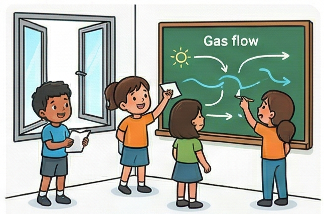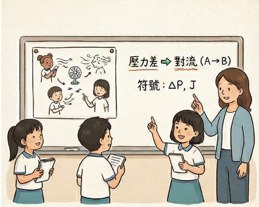 引入「對流」、「壓力差」等名詞,對應剛才的觀察,孩子會發現這些名詞不再需要死背,可以解釋他們觀察到的現象。