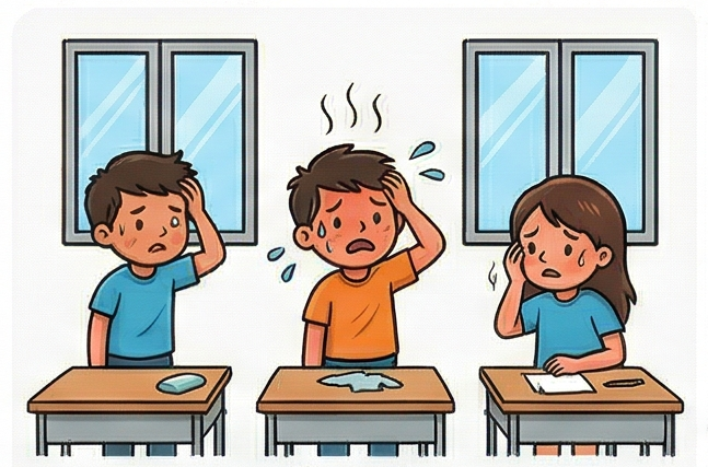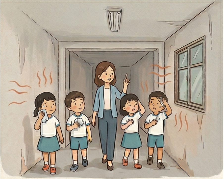 不談熱對流原理,直接帶孩子到校園中最悶的空間。