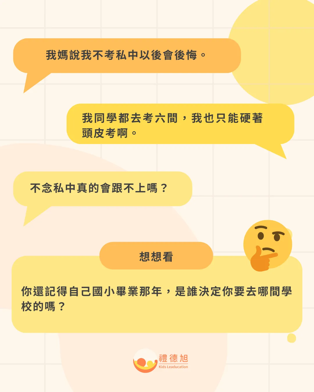 🔸「如果念私中代表要花更多時間補習,你覺得你能接受嗎?」