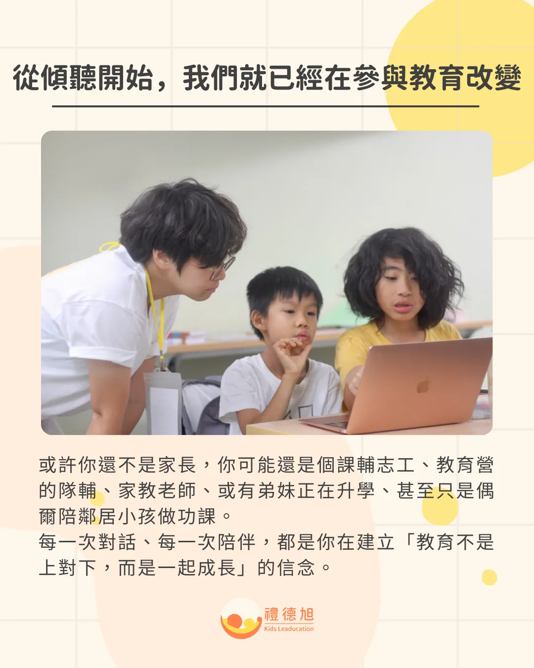 每一次對話、每一次陪伴,都是你在建立「教育不是上對下,而是一起成長」的信念。