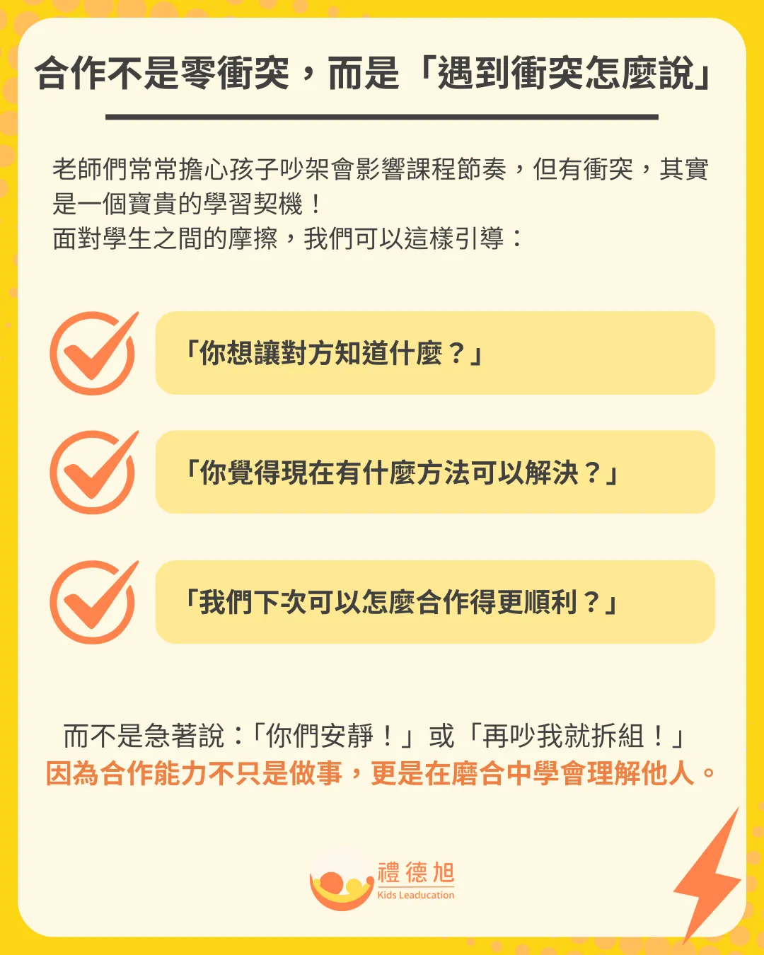 老師們常常擔心孩子吵架會影響課程節奏,但有衝突,其實是一個寶貴的學習契機!