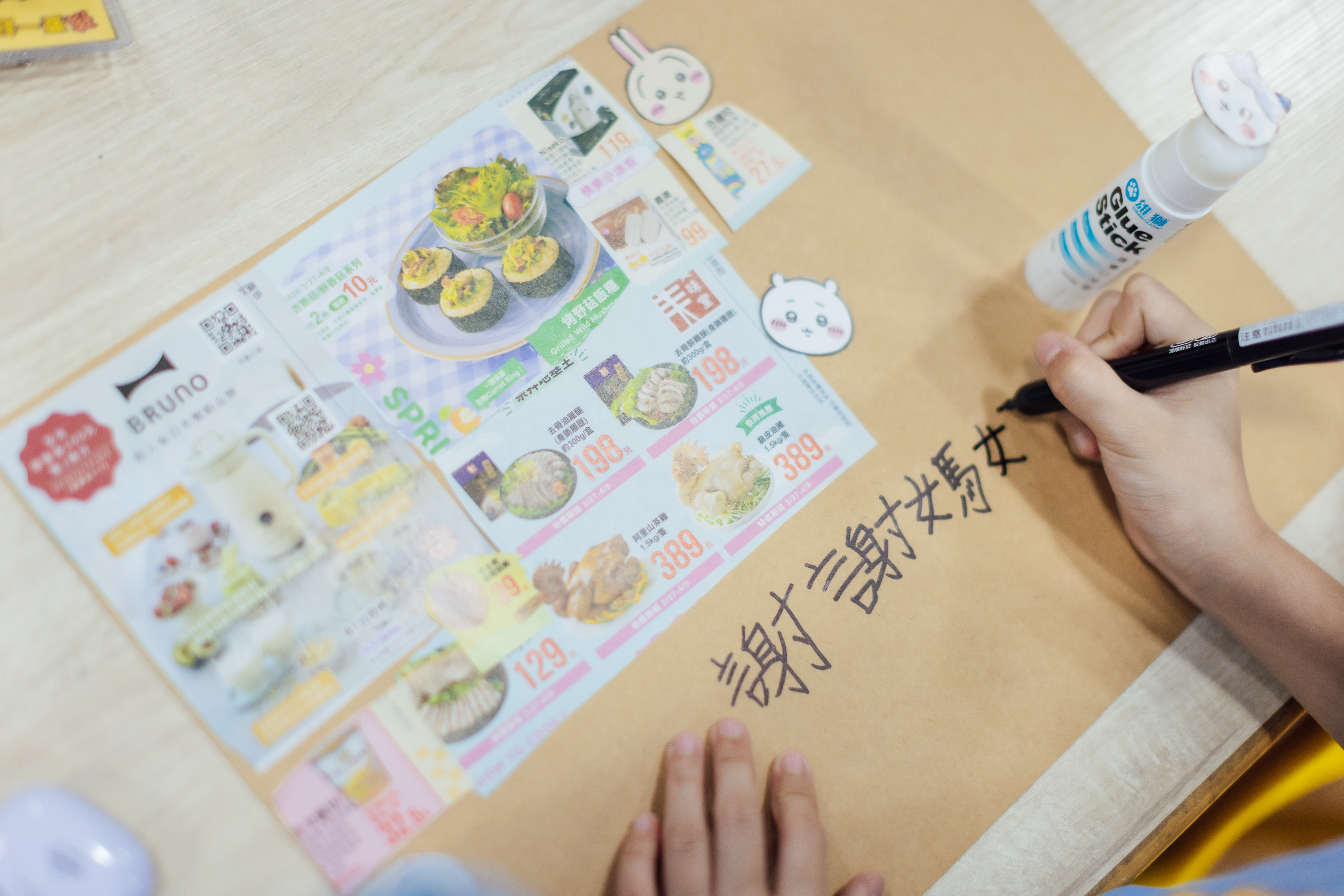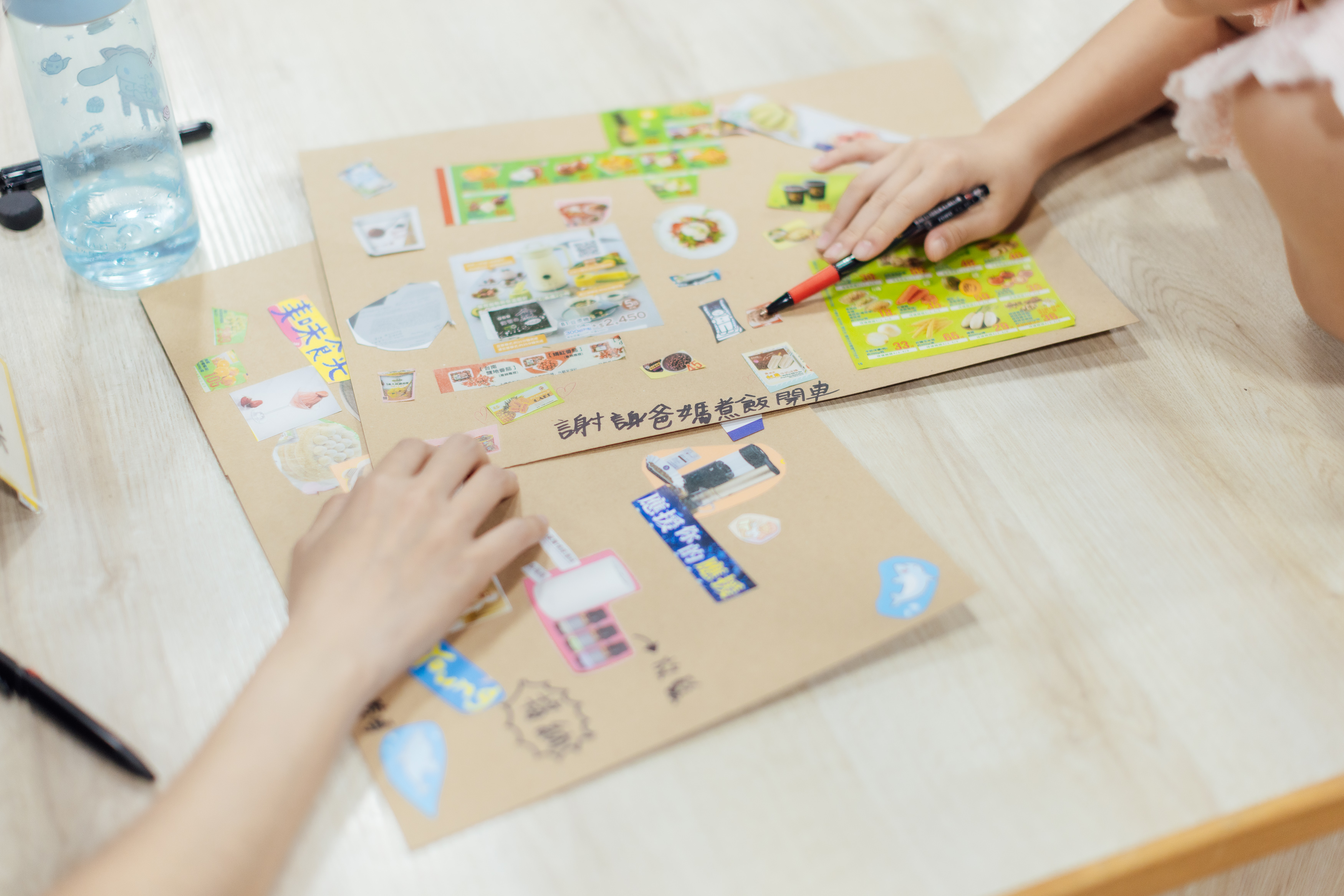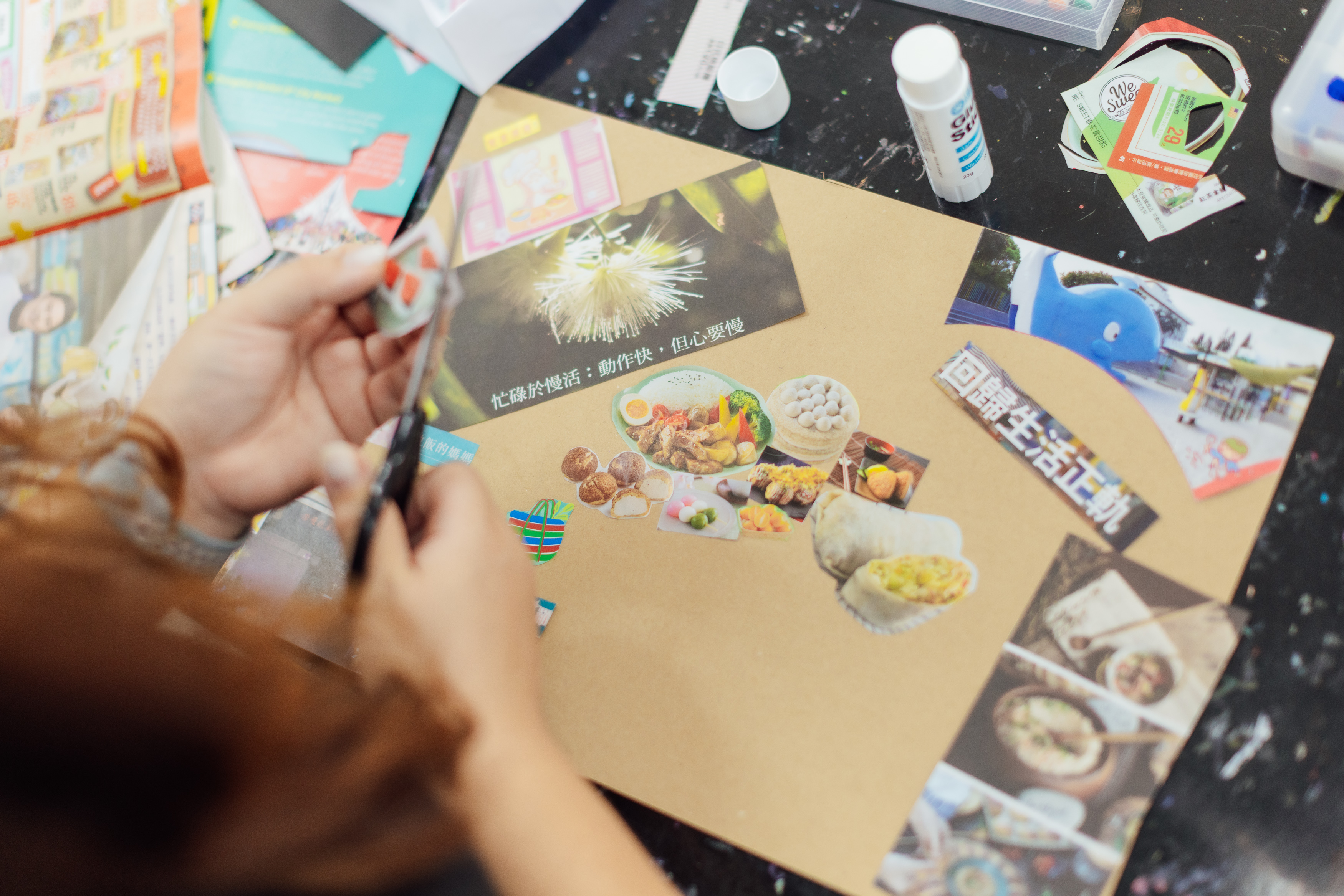 最後一個環節,我們讓爸媽和孩子分開在兩個空間,一步步引導大家思考理想的家庭用餐環境、用餐時想聊的話題、想在餐桌上一起品嚐的料理、想對彼此說的感謝,搭配圖文剪貼在自己的願景板上。
